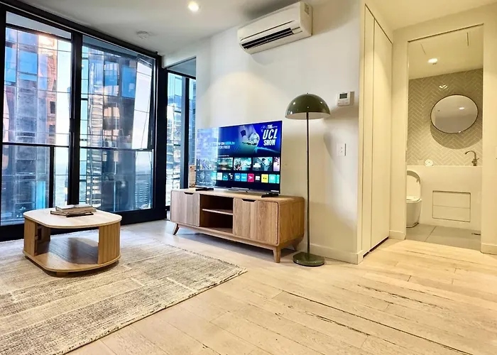 メルボルンの中心部まで徒歩10分で、ビクトリア州立図書館から700メートルです。 アパートは有名なユーレカタワーから1.7km離れた所の場所にあります。 宿泊施設から自動車で5分くらい離れたカールトン庭園にも行くことができます。